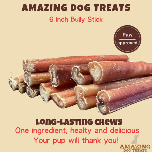 Bully Sticks 6 & 7 Inch Regular Size - Premium Bully Stick Dog Chews - Long Lasting Bully Sticks for Dogs - Best Bully Stick Dog Bone - No Hide Dog Chews