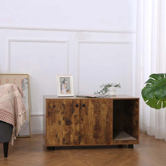 Large Cat Litter Box Enclosure, Litter Box Furniture, Brown, 35.8X20.47X19.88"